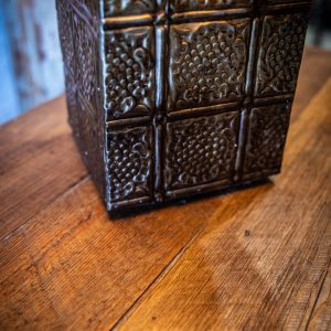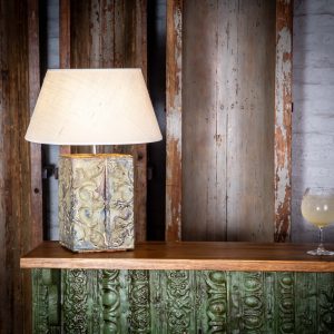 R O M A - Lampara de mesa fabricada en pie de madera torneada y pantalla de arpillera de tapiceria. Color blanco -