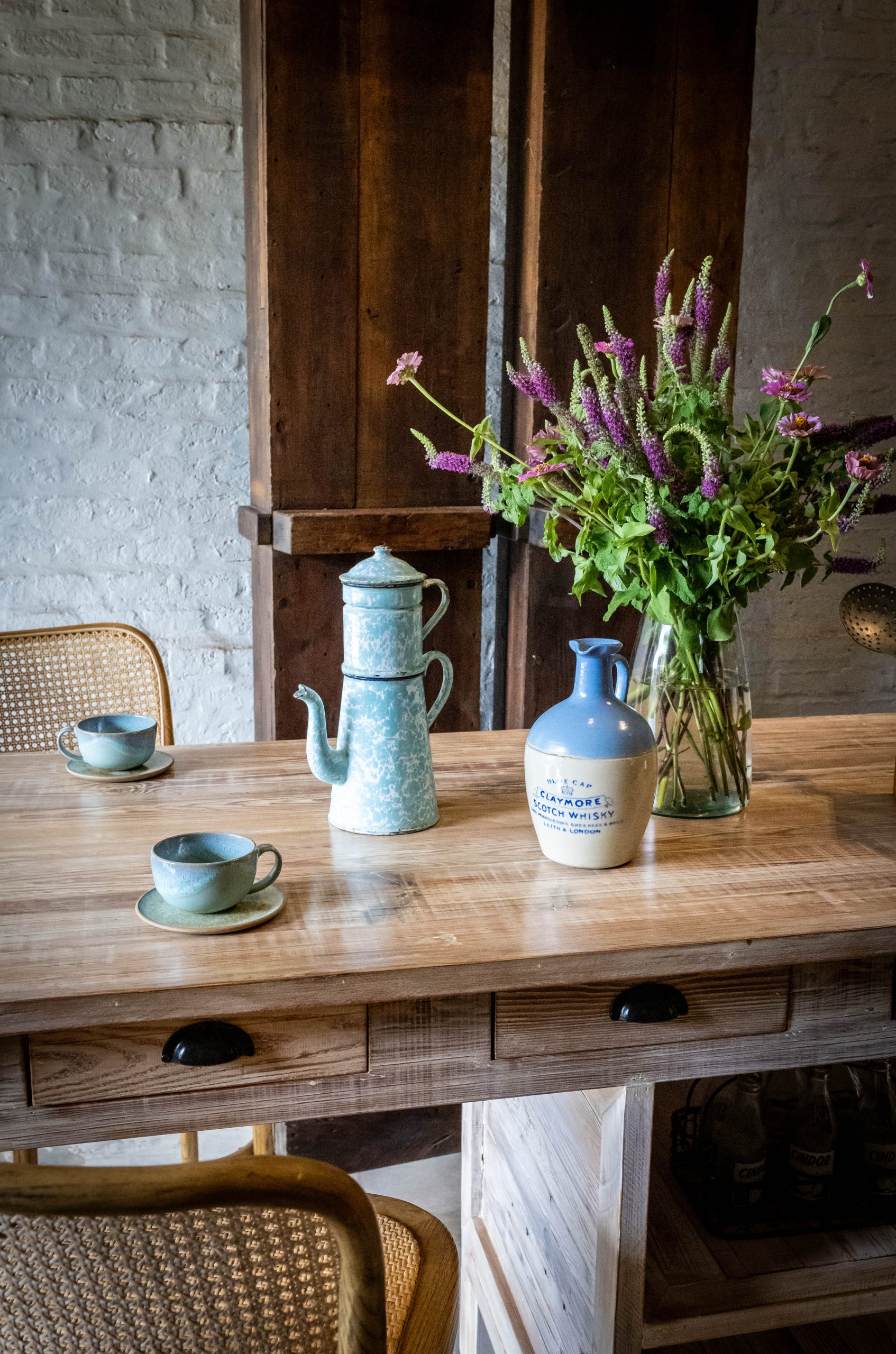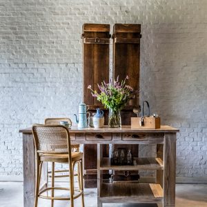 Fabricada artesanalmente en nuestro taller de Christen Antiques en pinotea color aguada blanca.