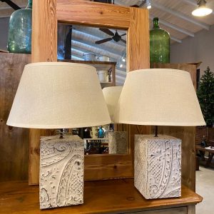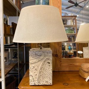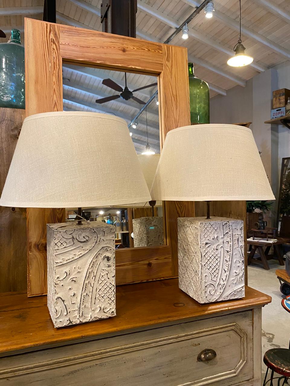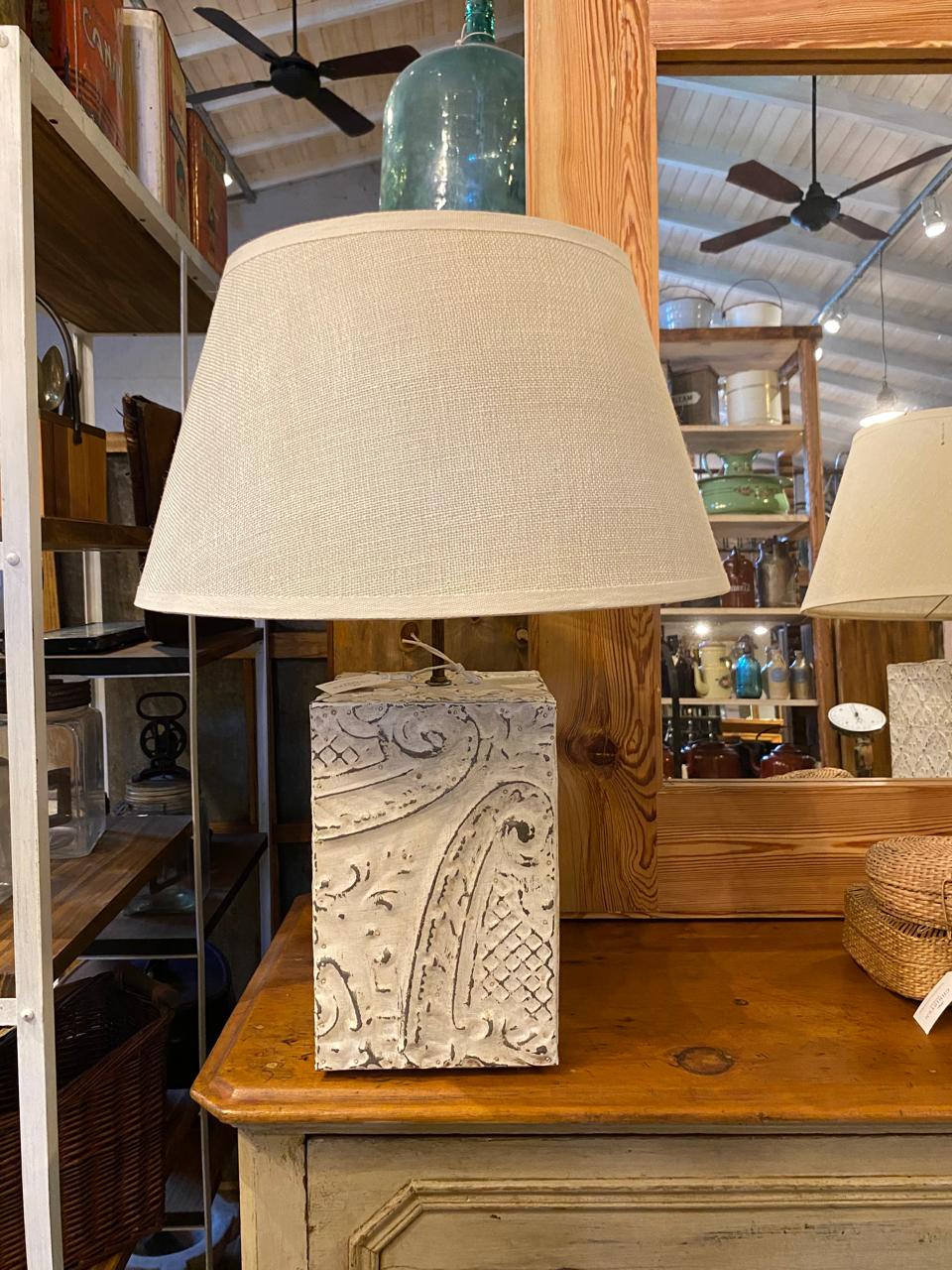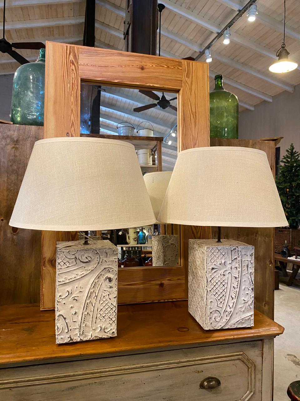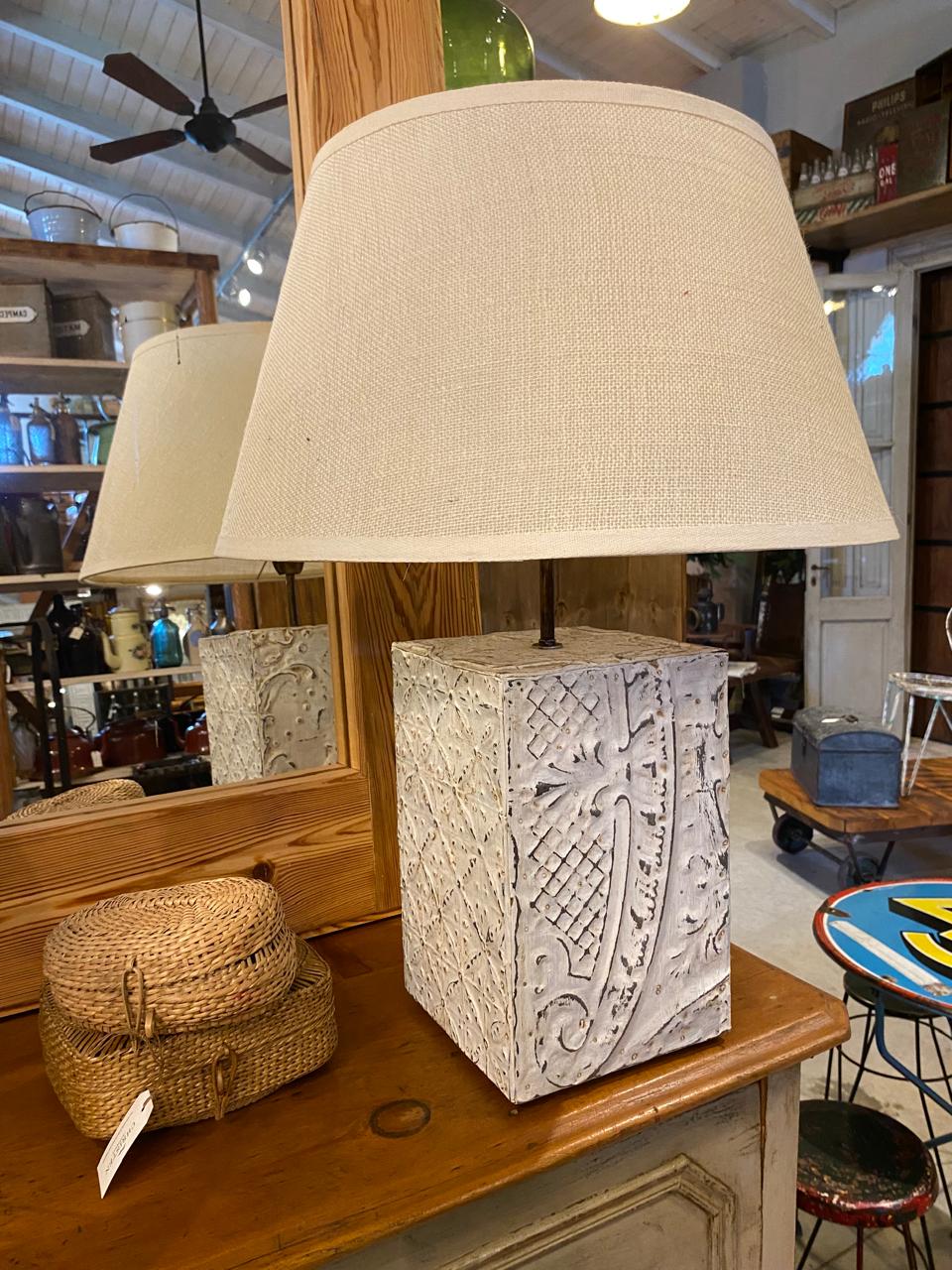 Fabricada en antiguas chapas estampadas extraidas de viejos cielorrasos de New york. Contiene pantalla de arpillera natural de tapiceria.