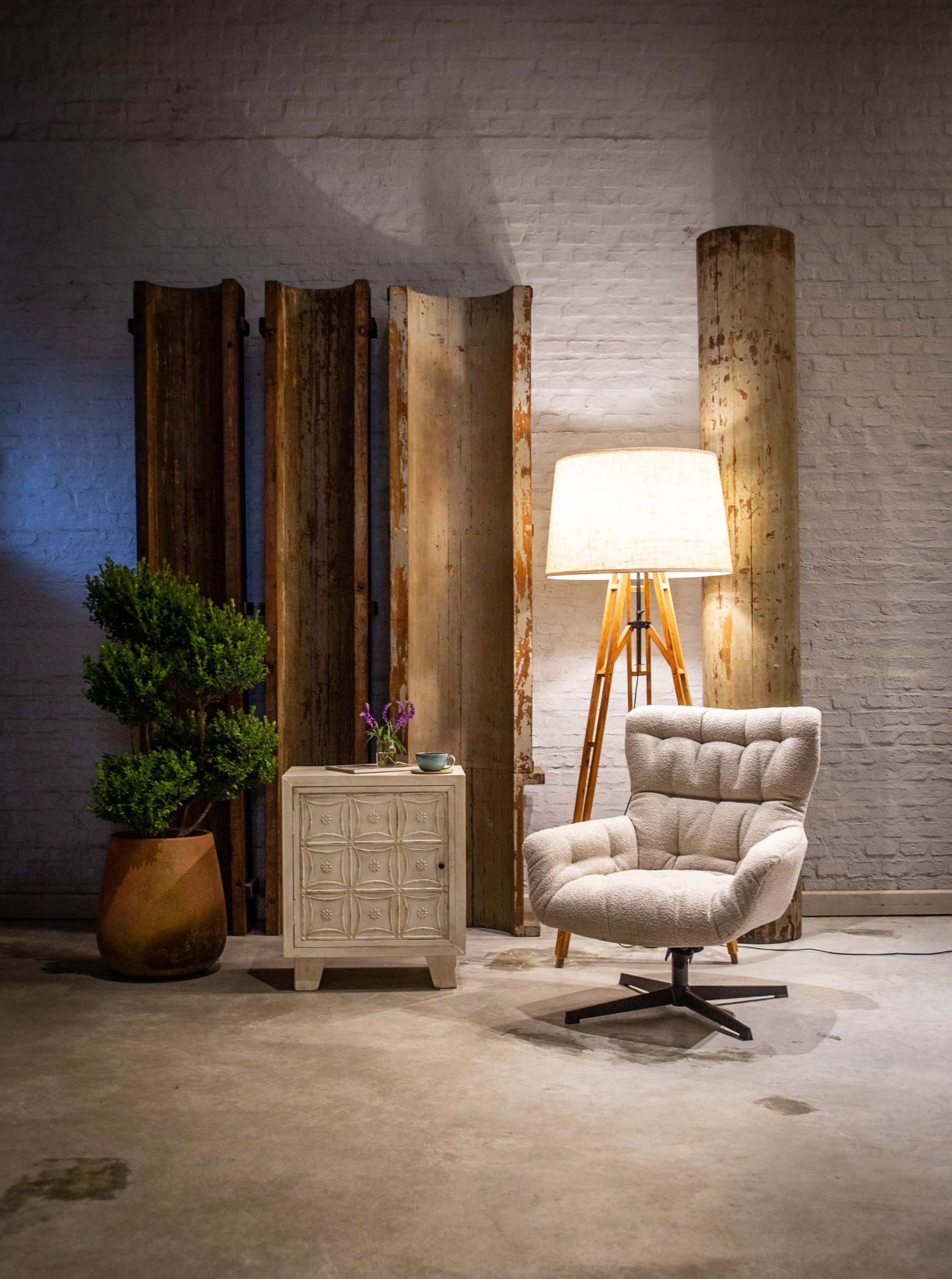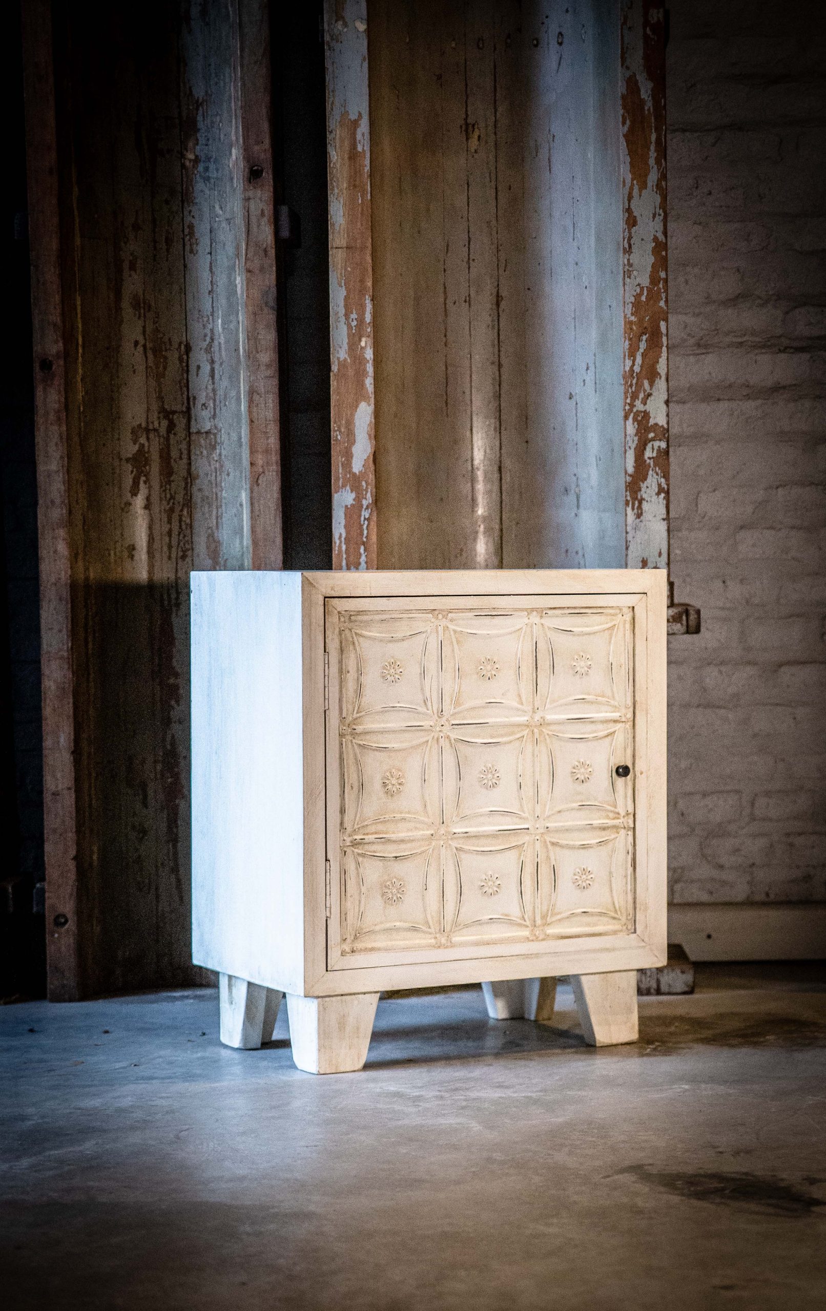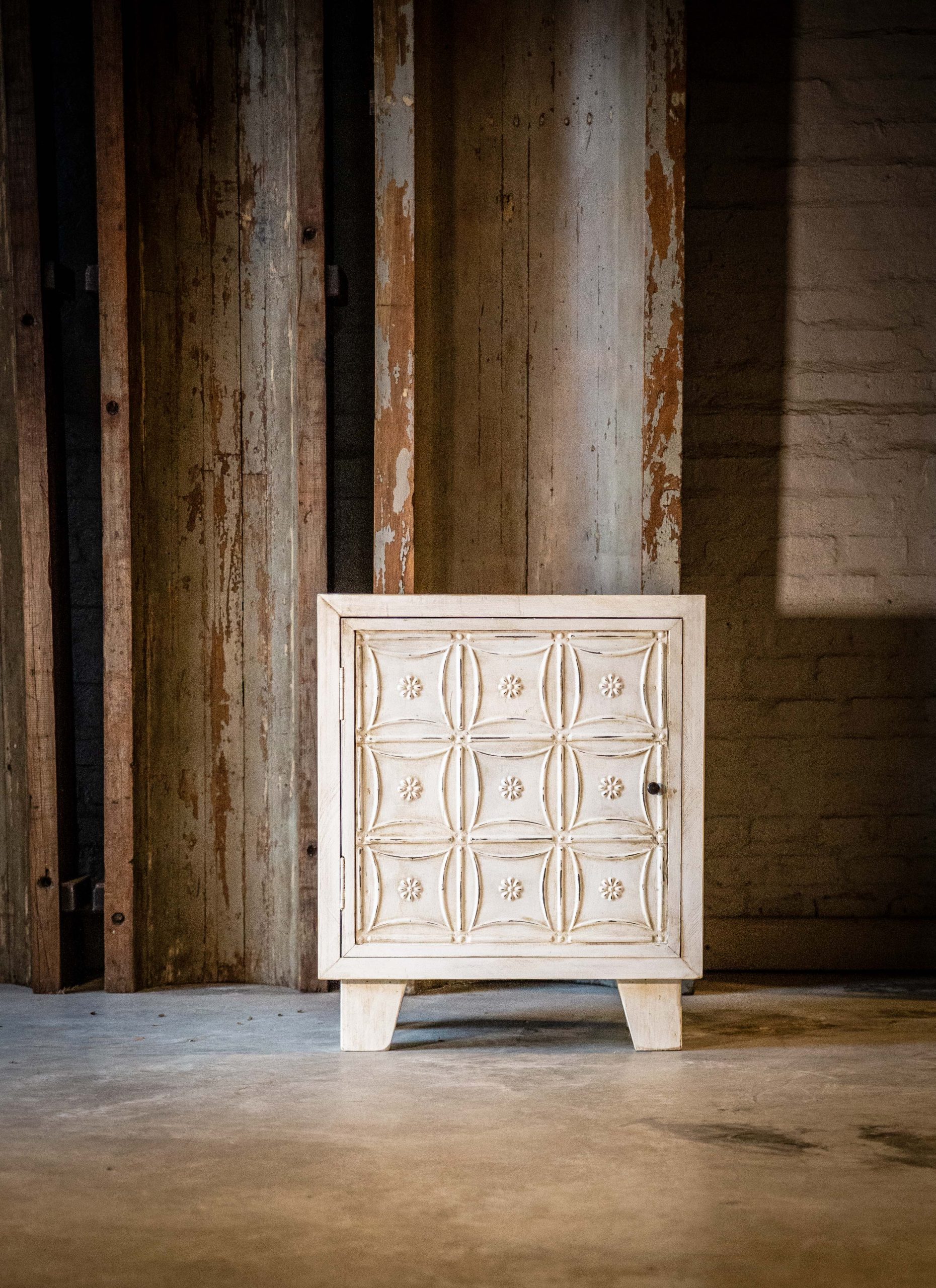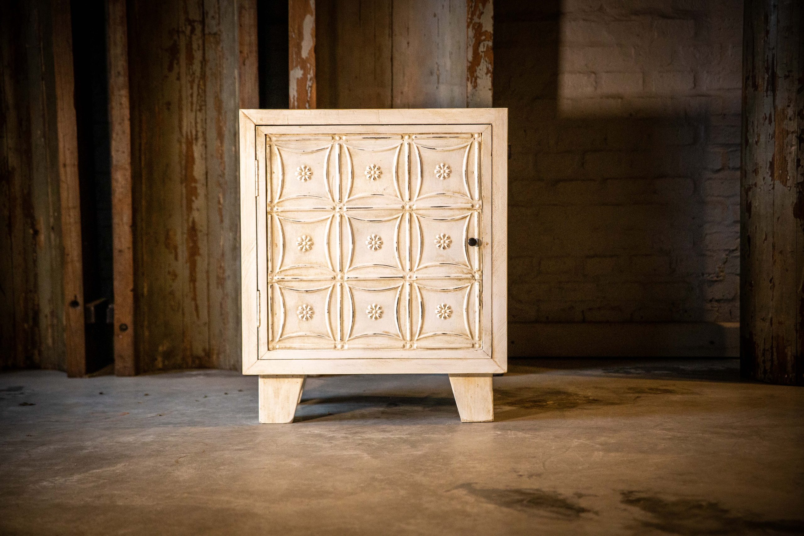 Fabricada en madera Pino taeda radial y chapas estampadas antiguas extraidas de viejos cielorrasos de New York.