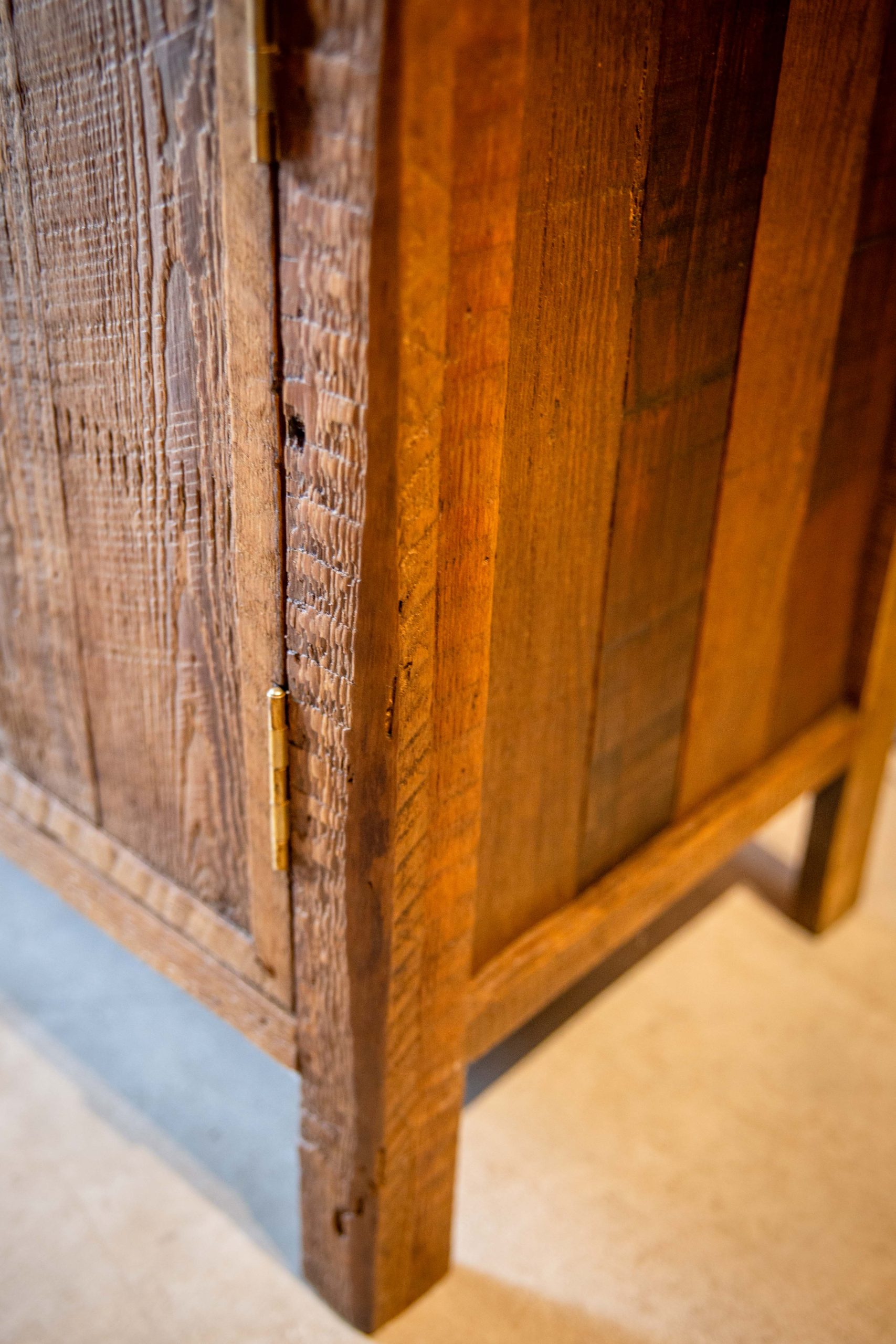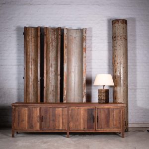 T O S CA NA Mesita de luz fabricada con maderas recuperadas y chapas estampadas antiguas extraidas de viejos cielorrasos de New York. Envejecidas por el paso del tiempo. Contiene 2 puertas y 2 cajones. Medidas 58x40x78 de alto.