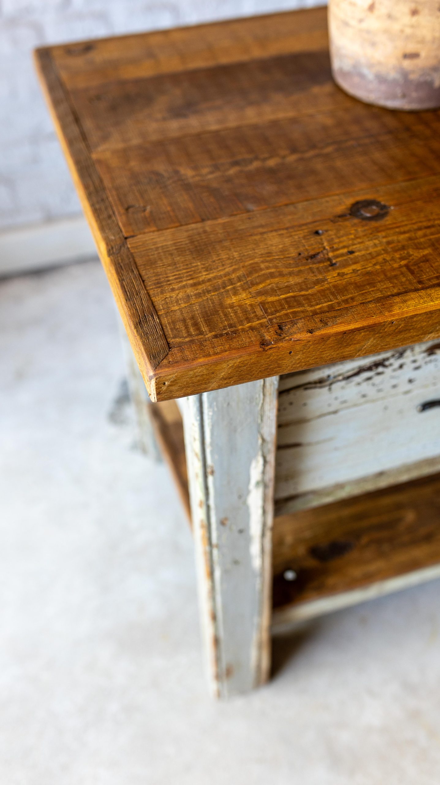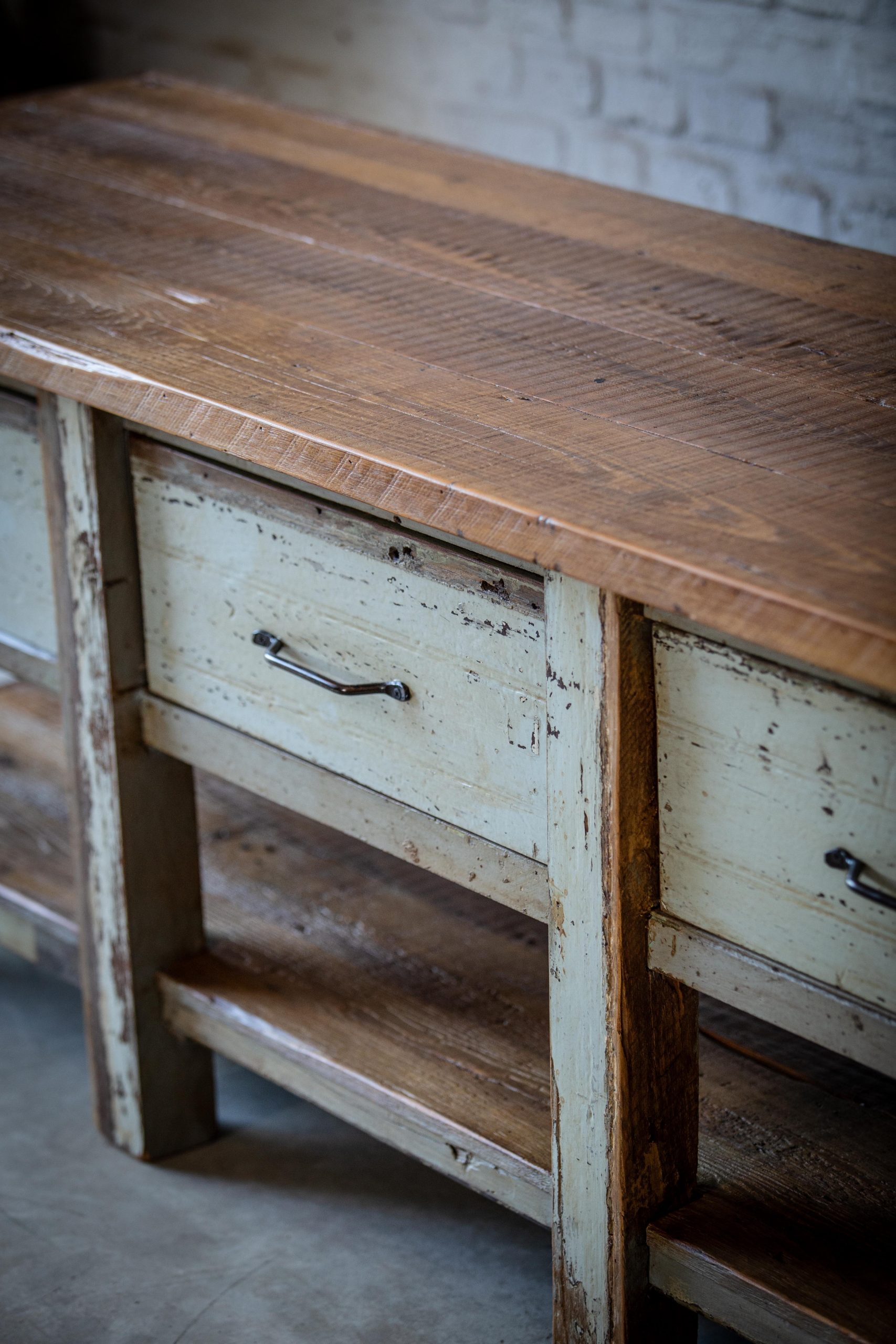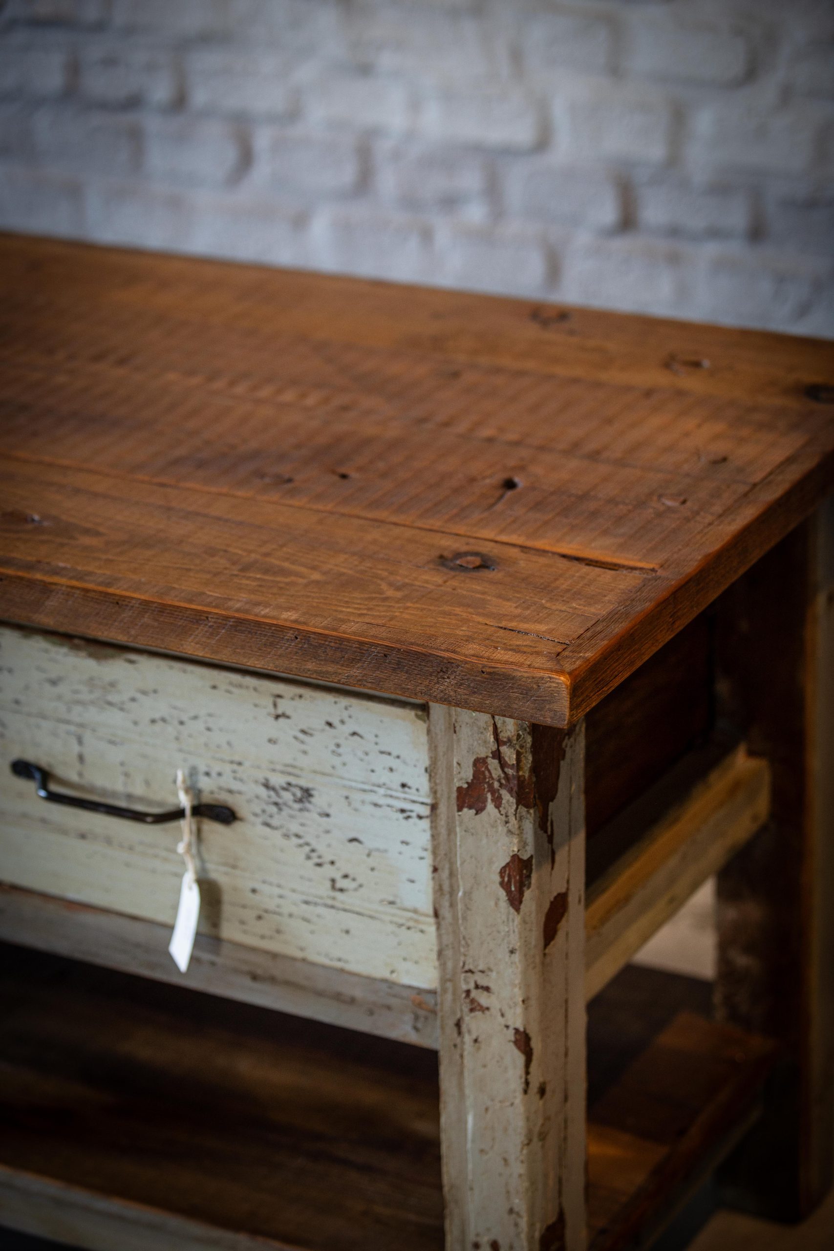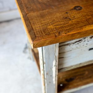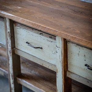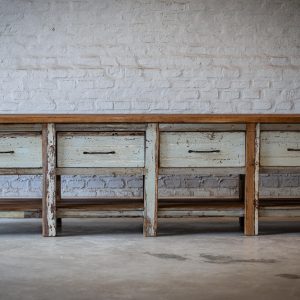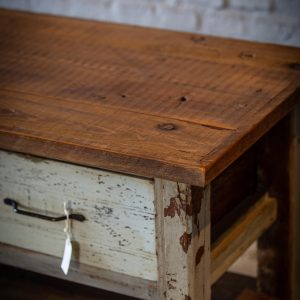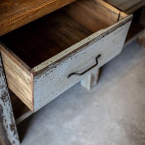 Fabricado con antiguas puertas taperas y Tapa de pinotea rustica. color gris.