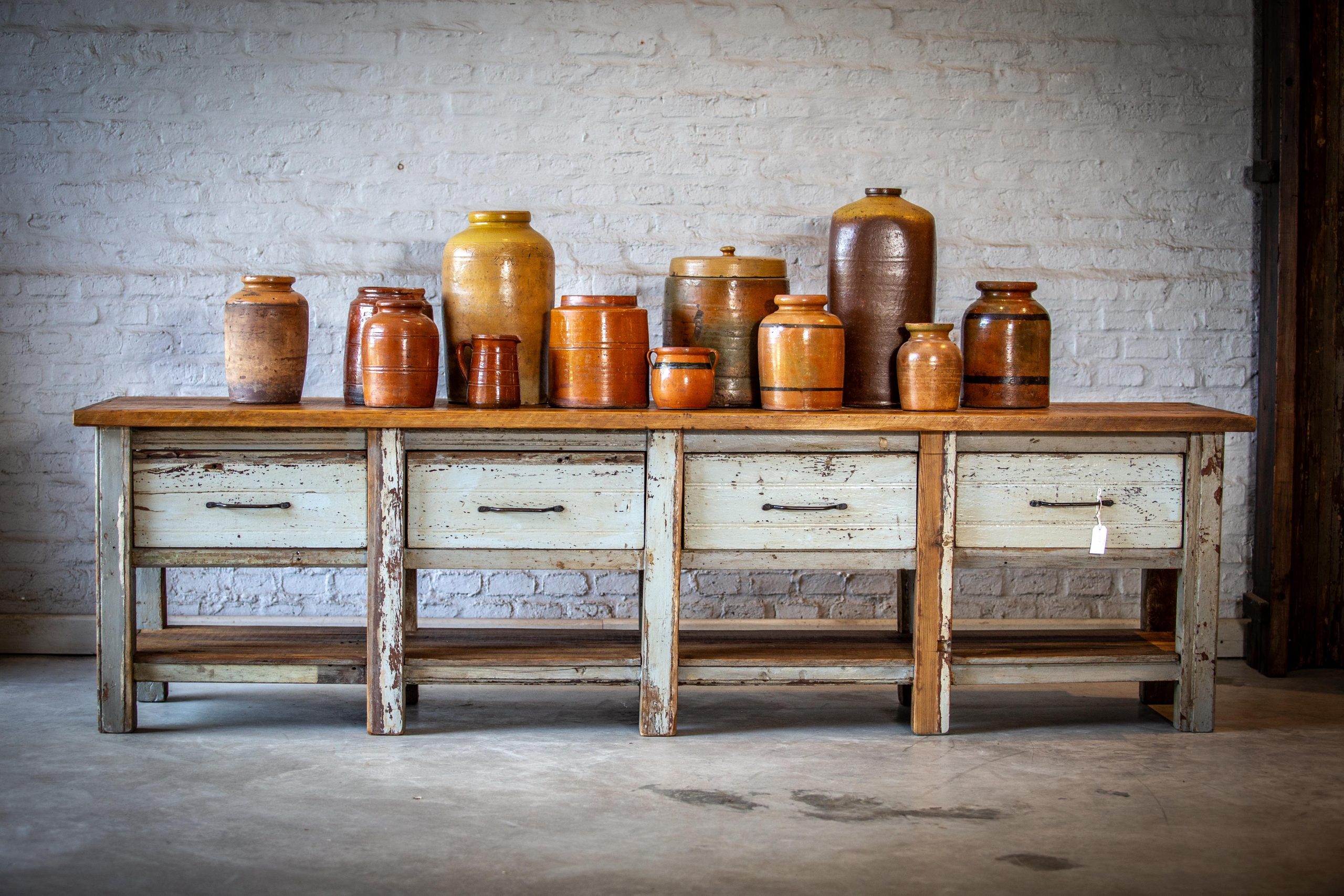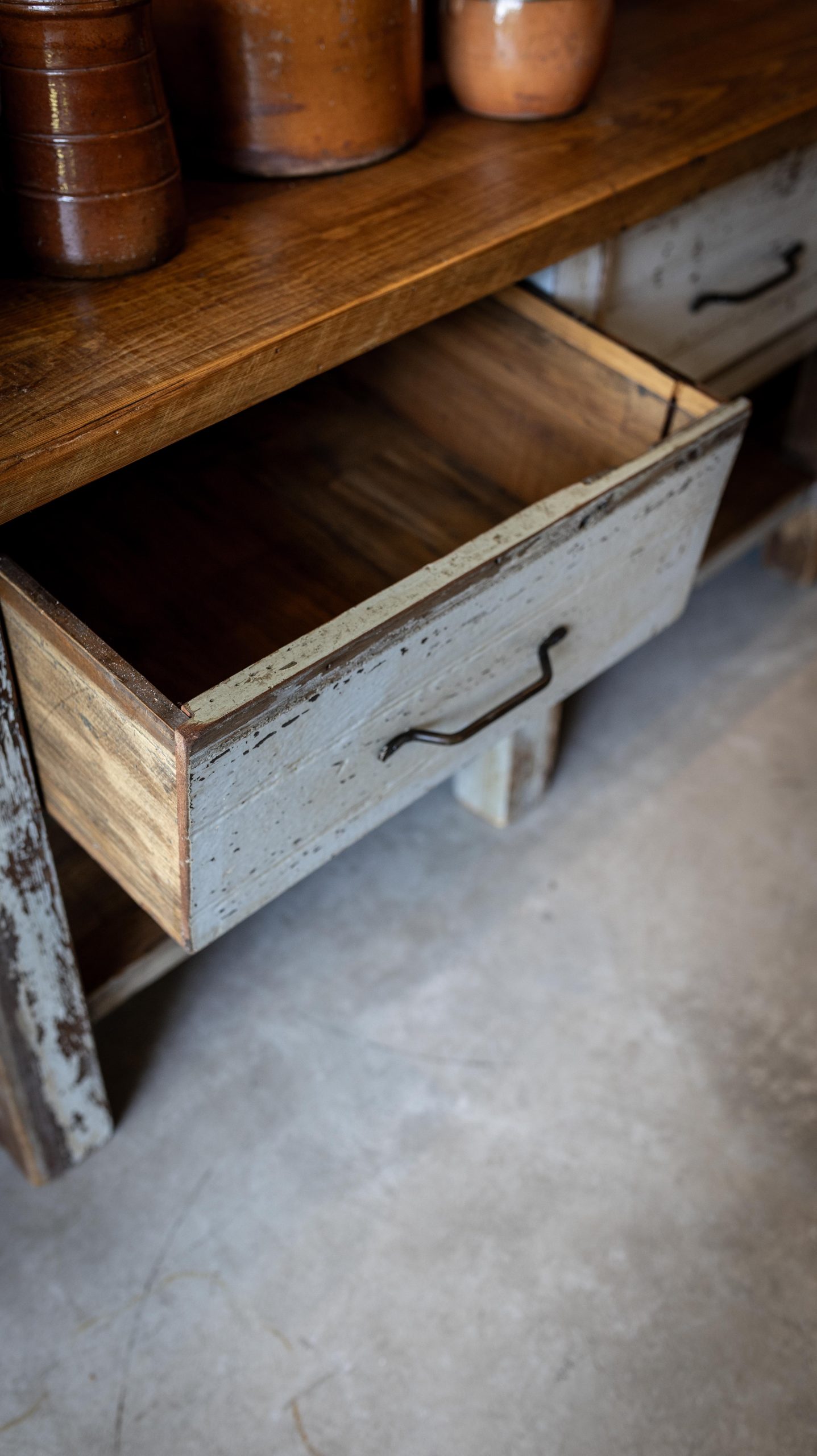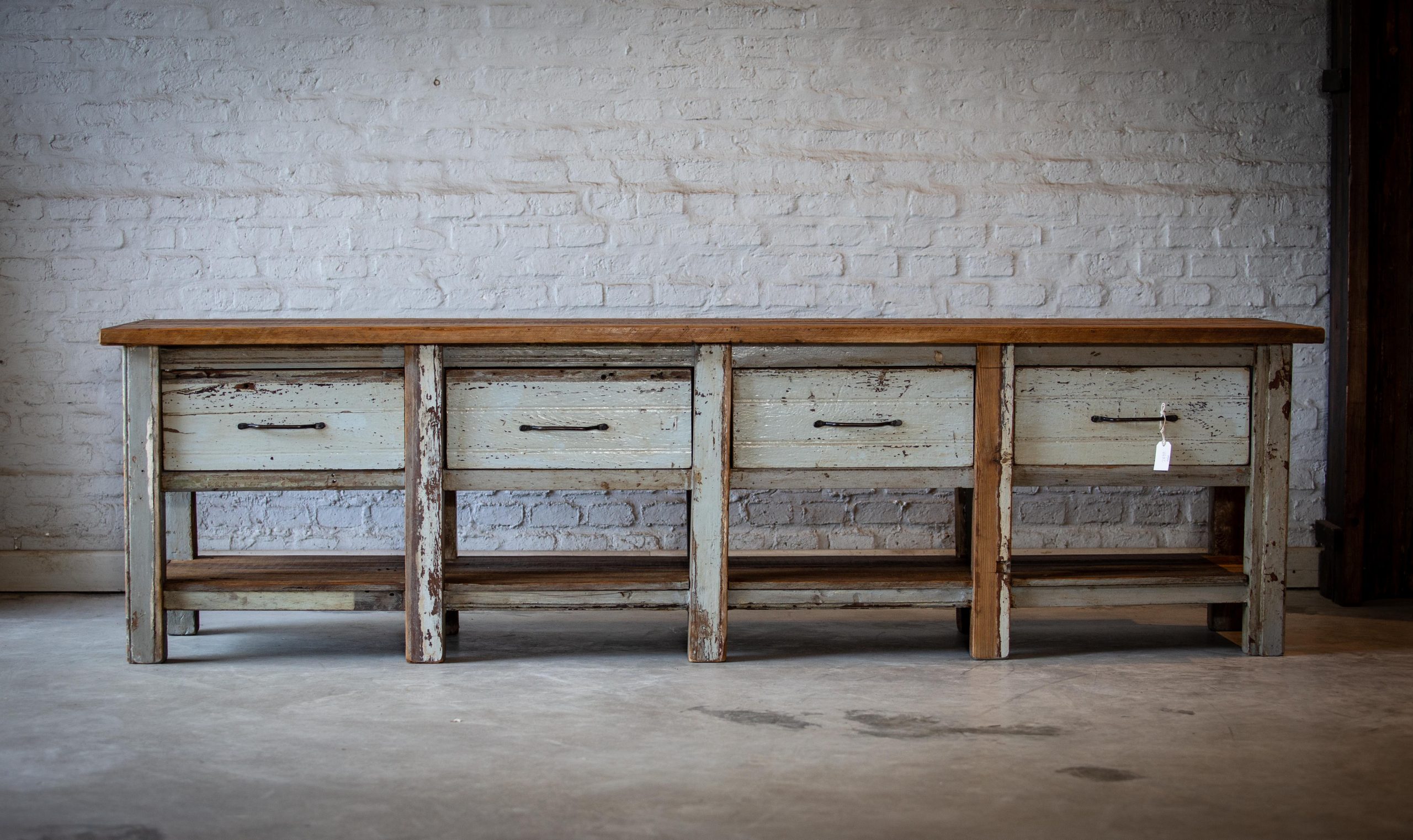 Fabricado con antiguas puertas taperas y Tapa de pinotea rustica. color gris.